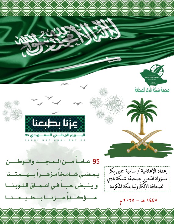 وكذلك قدمت الإعلامية/. سامية جميل بكر مسؤولة التحرير بصحيفة شبكة نادي الصحافة الإلكترونية بمكة المكرمة بوستر جميل بمناسبة اليوم الوطني ٩٥ للمملكة (عزنا بطبعنا) حمل بيتين رائعين من تأليفها قالت فيهم: